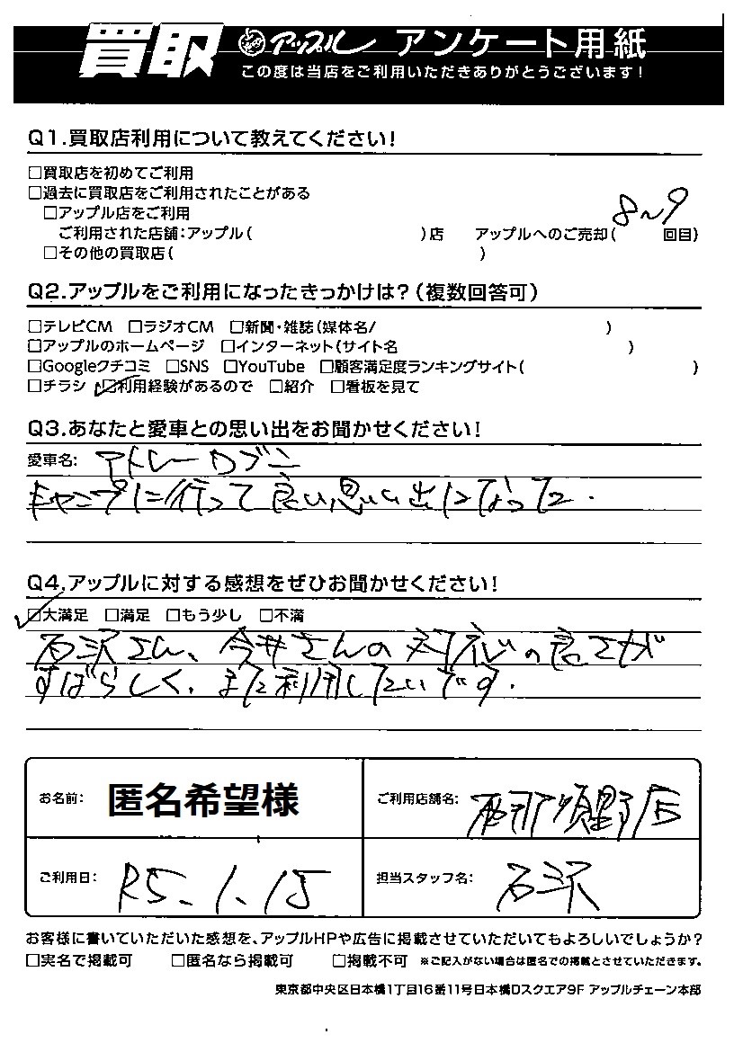 匿名希望様 車名:ダイハツ アトレーワゴン