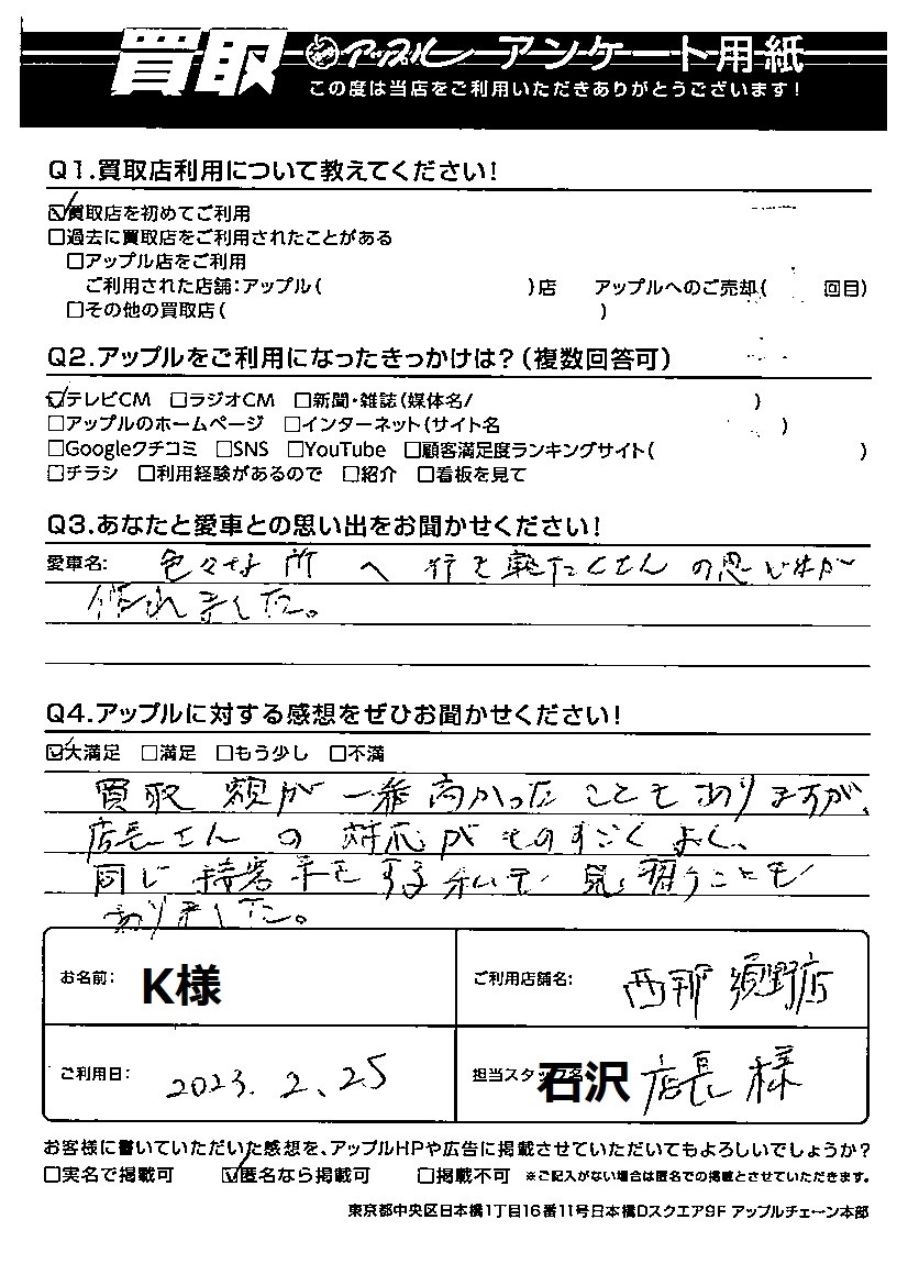 買取額が一番高かったこともありますが、店長さんの対応がものすごくよく、同じ接客業を