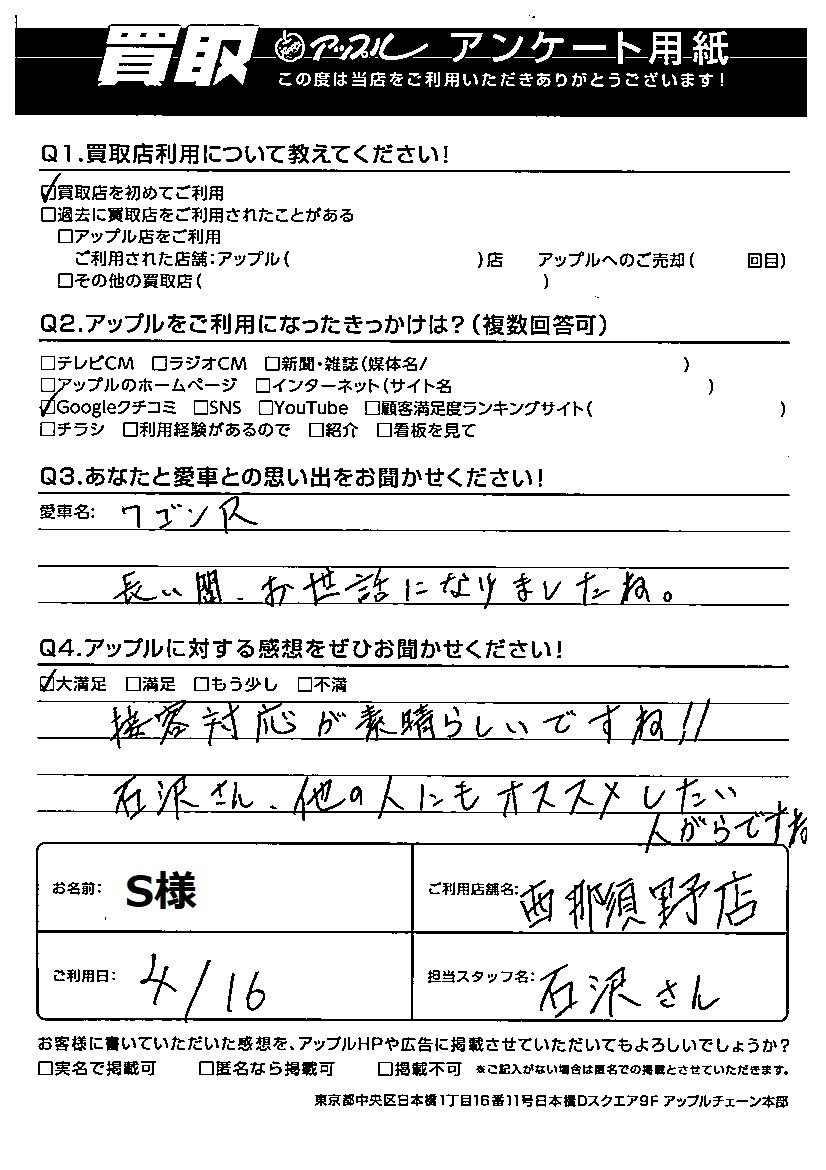 S様 車名:スズキ ワゴンR