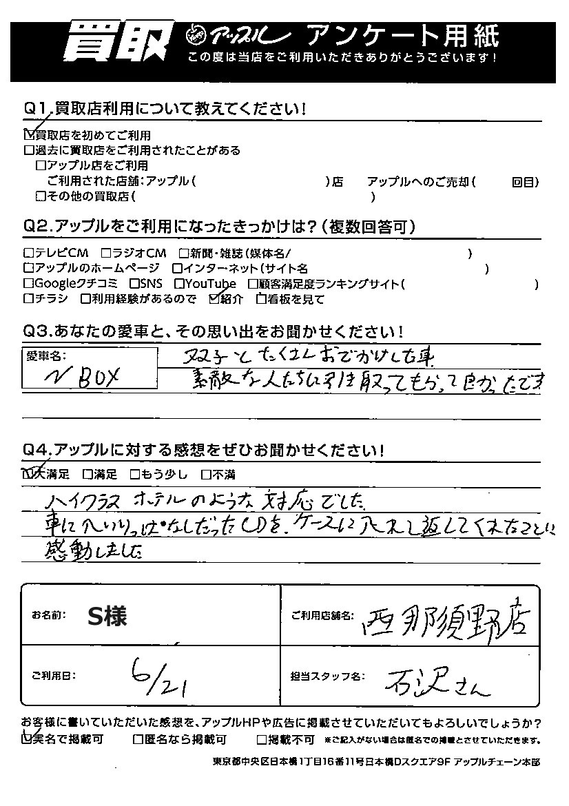 車に入いりっぱなしだったCDを、ケースに入れて返してくれたことに感動しました。