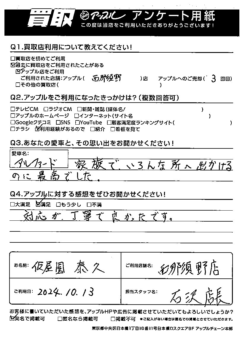 仮屋園 泰久様 車名:トヨタ アルファード(H27年1月~のHYBRID含む)