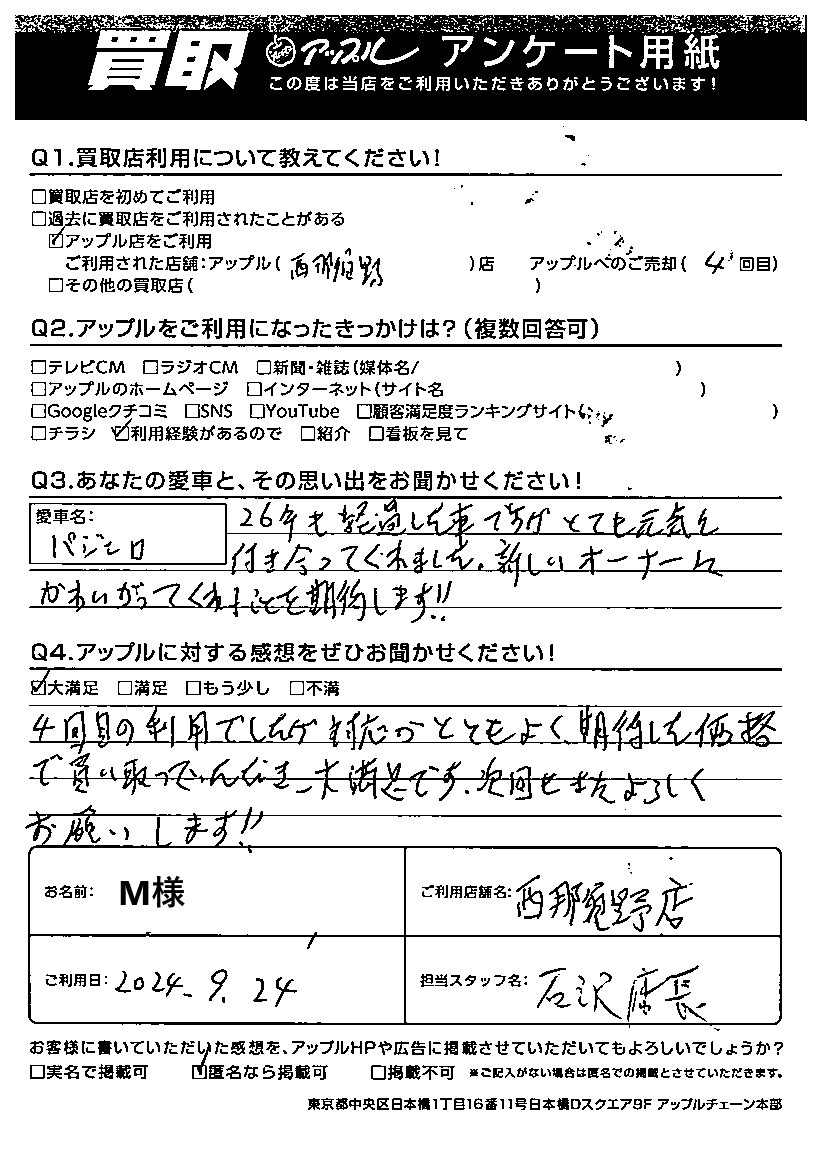 M様 車名:三菱 パジェロ