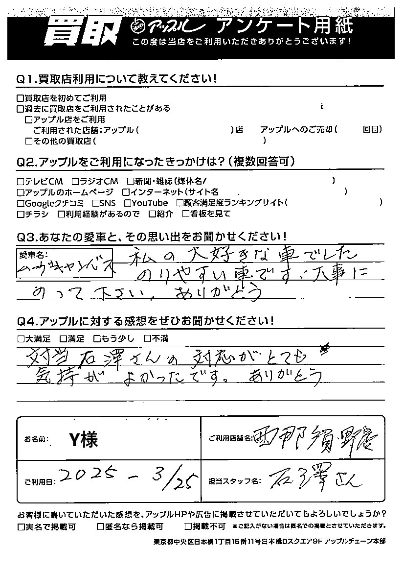 Y様 車名:ダイハツ ムーヴキャンバス
