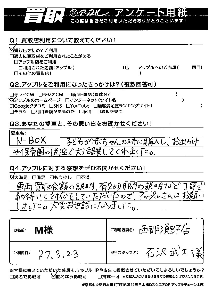 M様 車名:ホンダ N-BOX