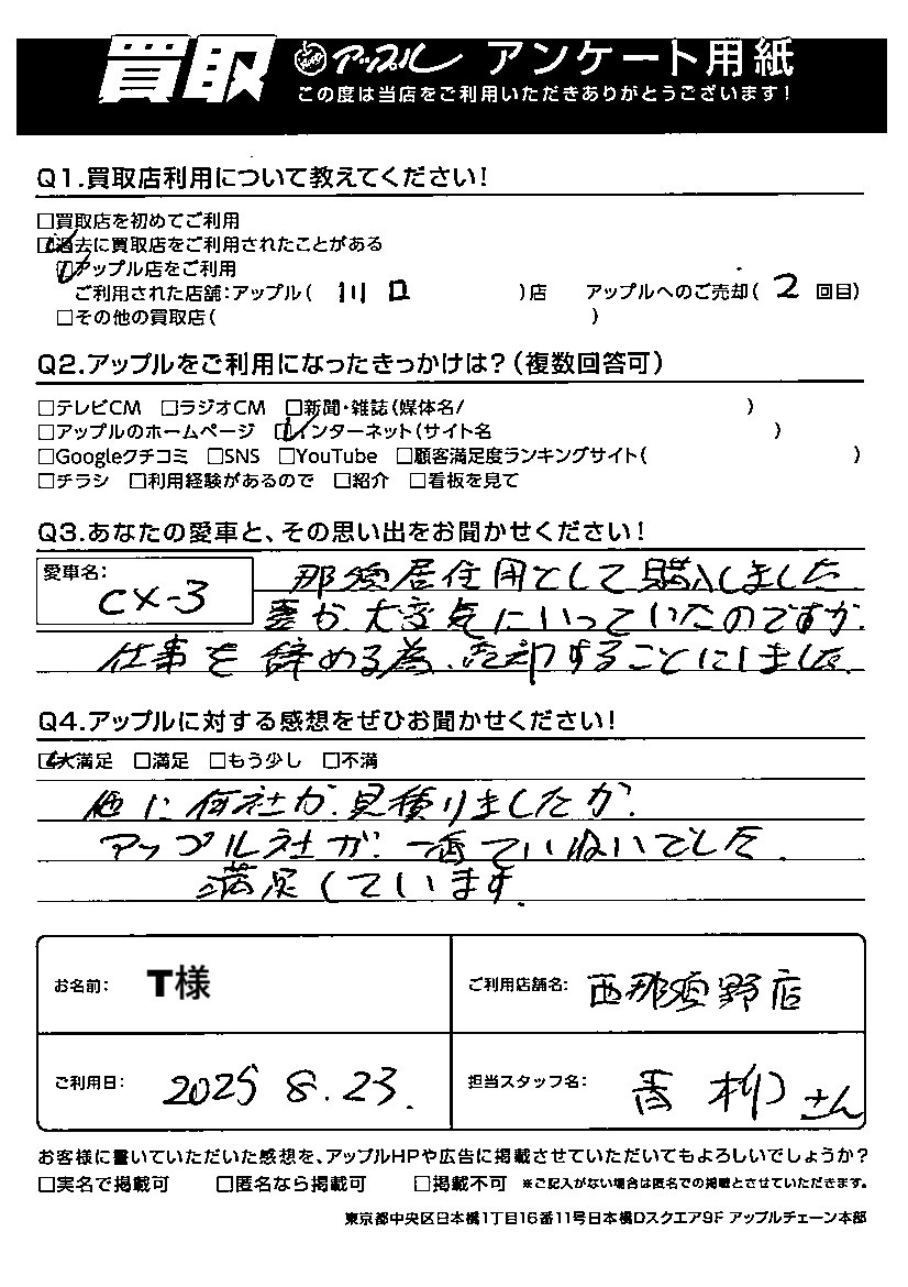 T様 車名:マツダ CX-3