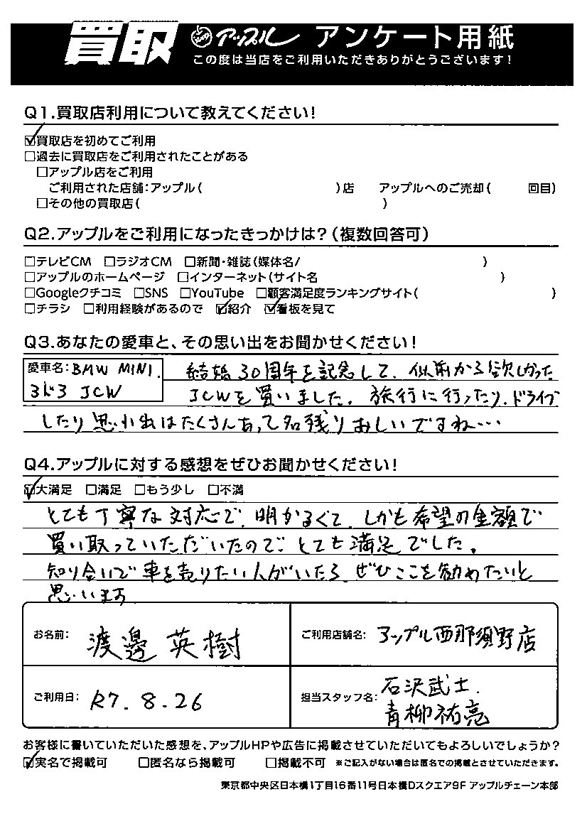 知り合いで車を売りたい人がいたら、ぜひここを勧めたいと思います。