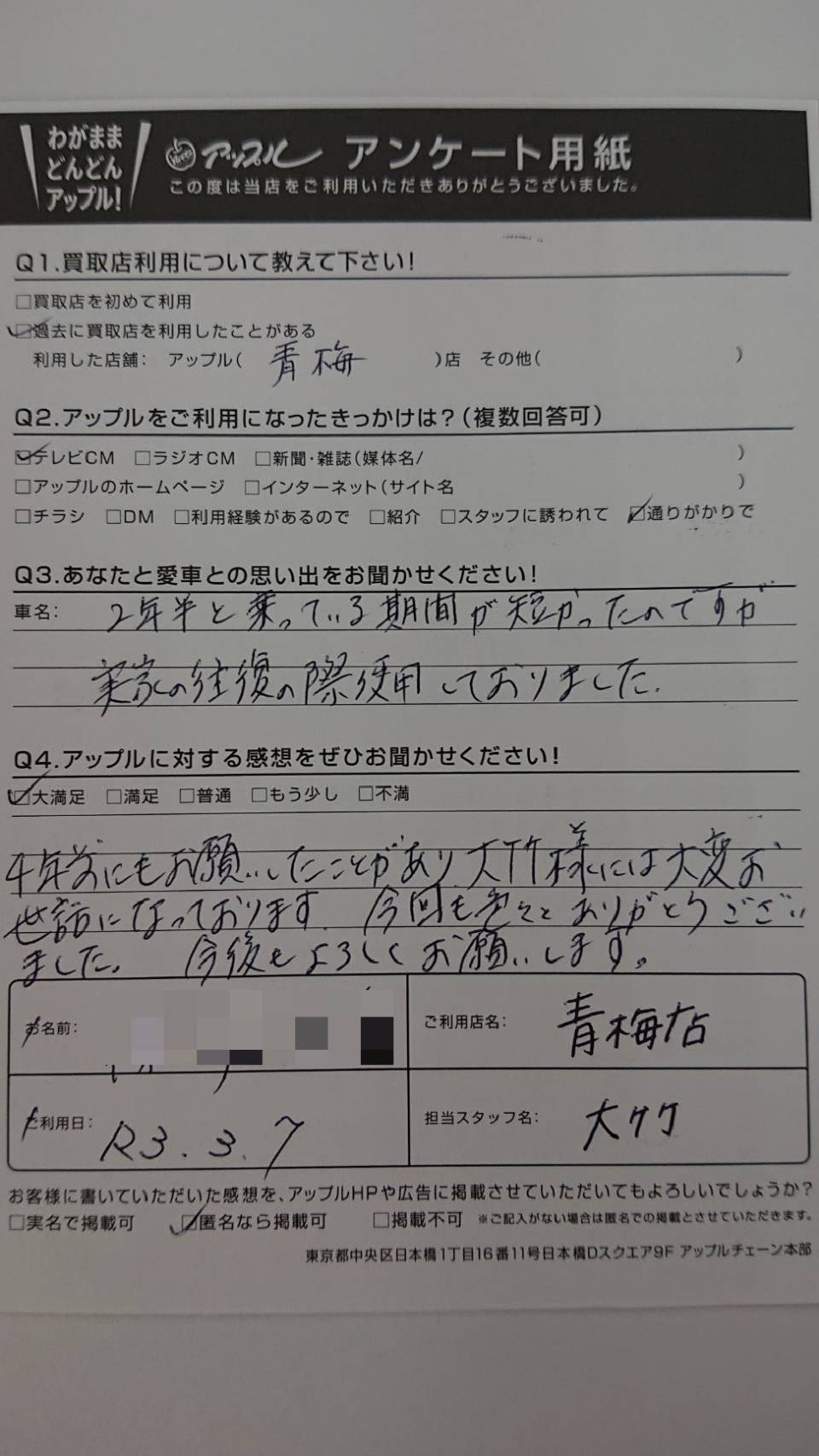 ご記入日: 2021/03/07