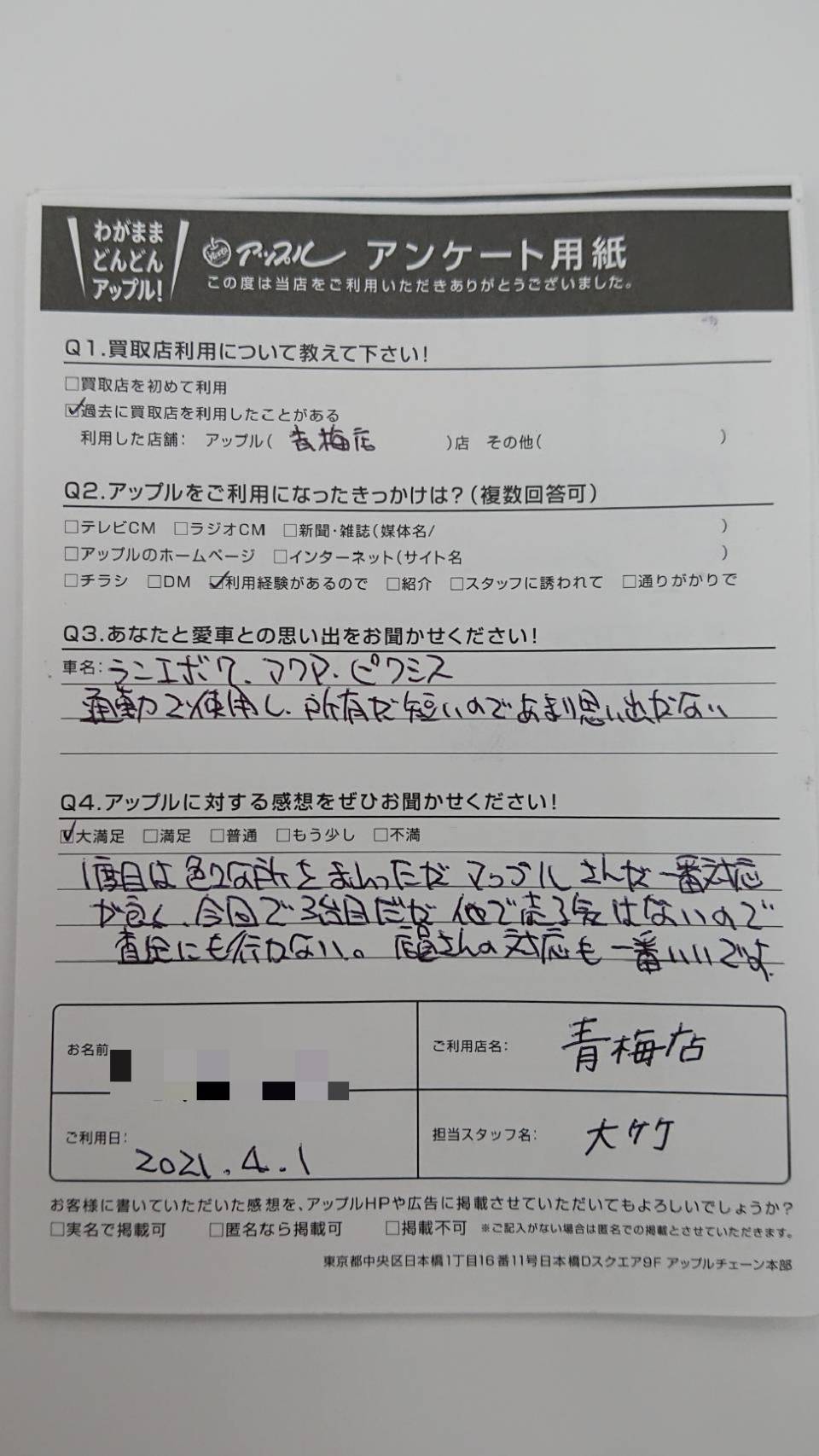 査定にも行かない。店員さんの対応も一番いいです。