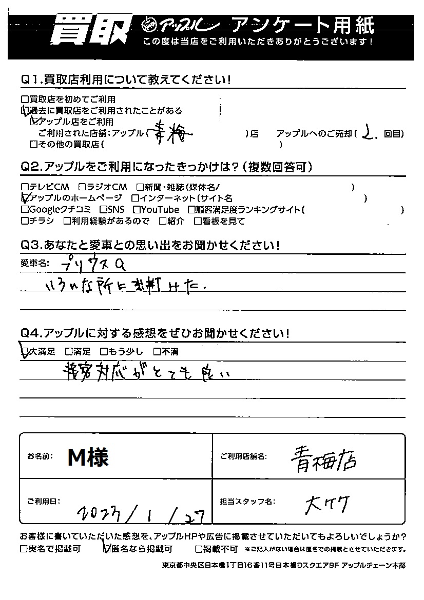 M様 車名:トヨタ プリウスα