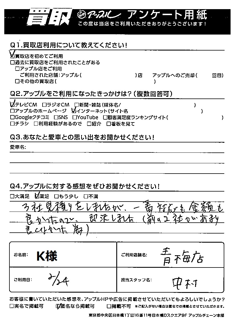 3社見積もりをしましたが、一番対応も金額も良かったので