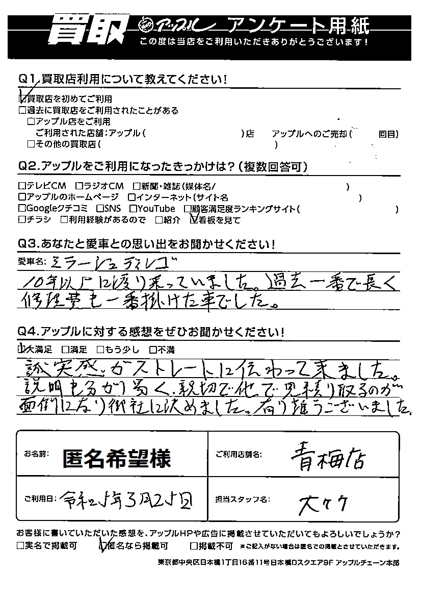 匿名希望様  車名:三菱 ミラージュディンゴ ディンゴ(ミラージュ)