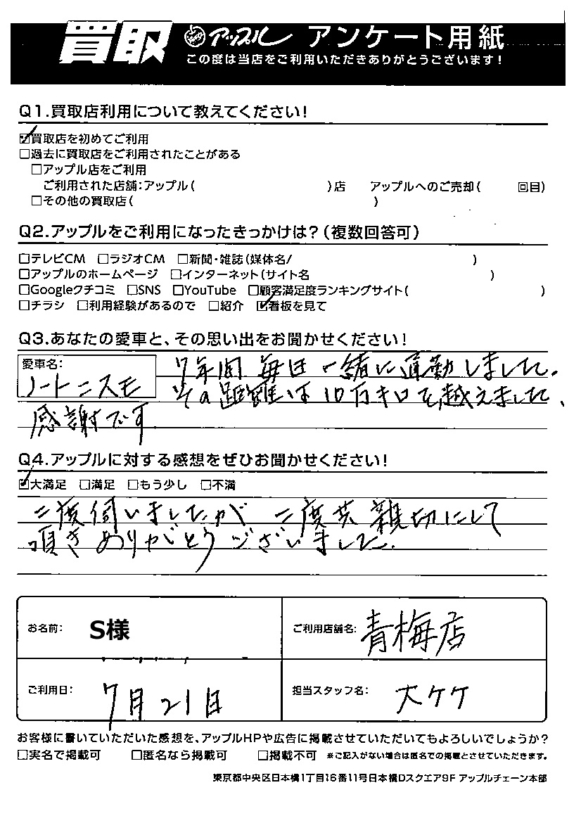 S様 車名:日産 ノート