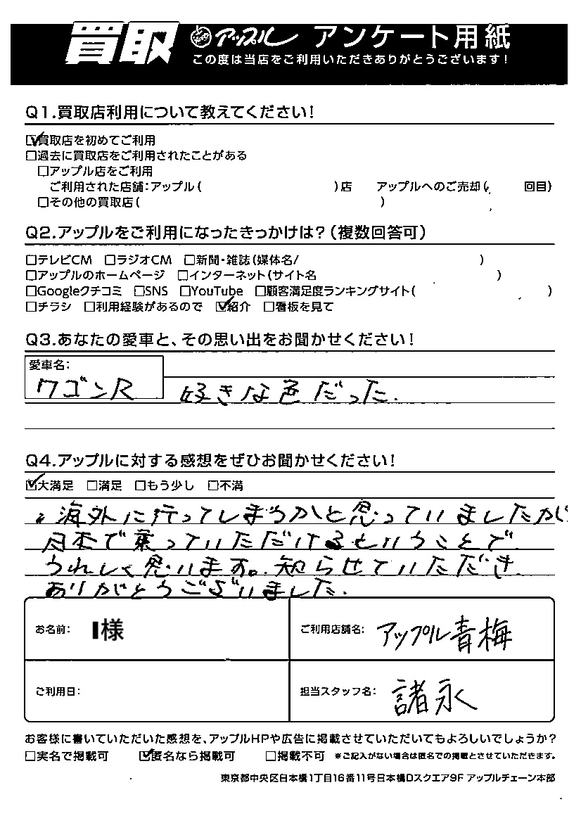 I様 車名:スズキ ワゴンR