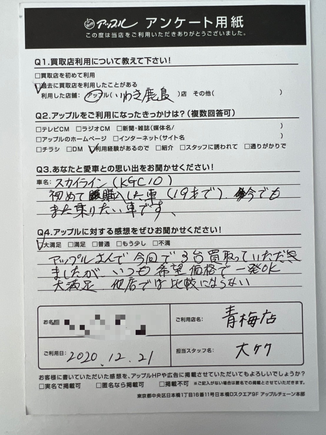 アップルさんで今回で3台買取っていただきましたが、