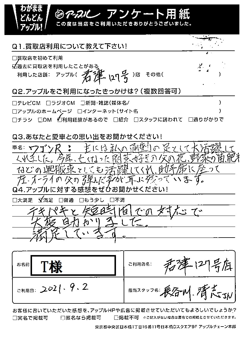 T様 車名:スズキ ワゴンR