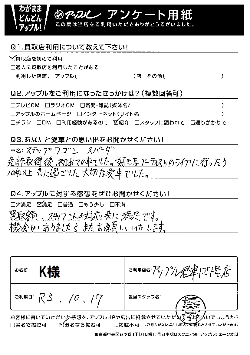 免許取得後、初めての車でした。好きなアーティストのライブに行ったり