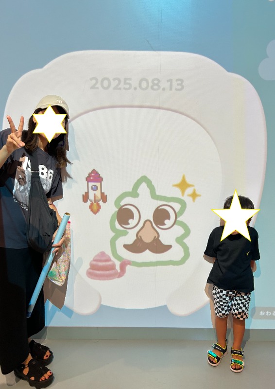 お盆シーズンということもあり館内は超満員!それでも約1時間30分、子供たちと一緒に“うんこ”をテーマにしたゲームや展示を満喫✨