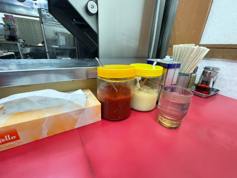 カウンターには、定番の薬味がずら~と、並んでいます。