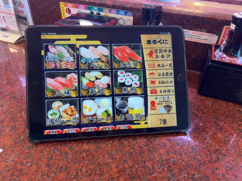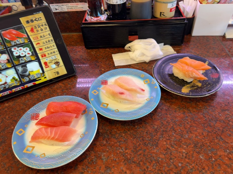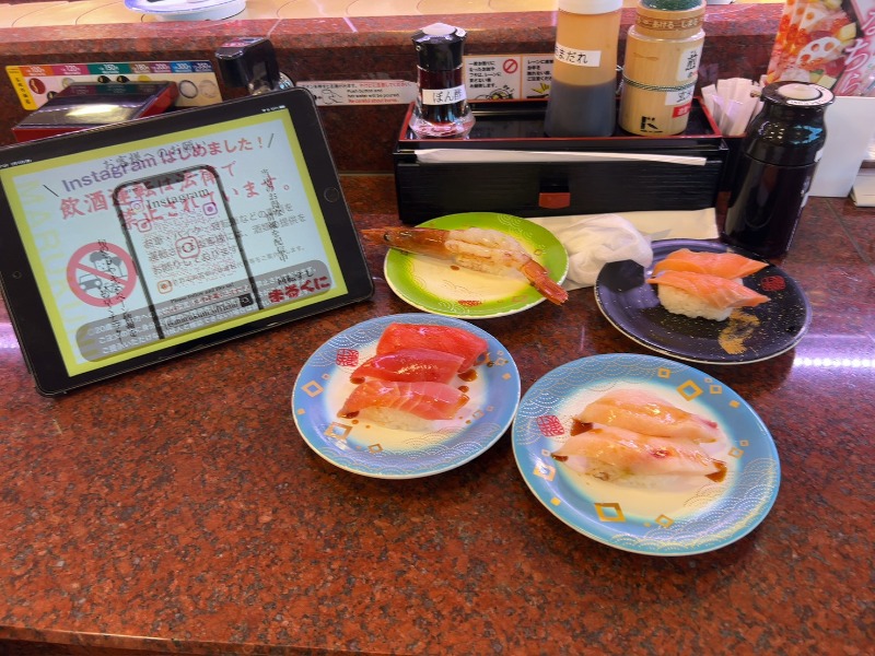 そして夕ご飯は「回転寿司 まるくに」さんへ。