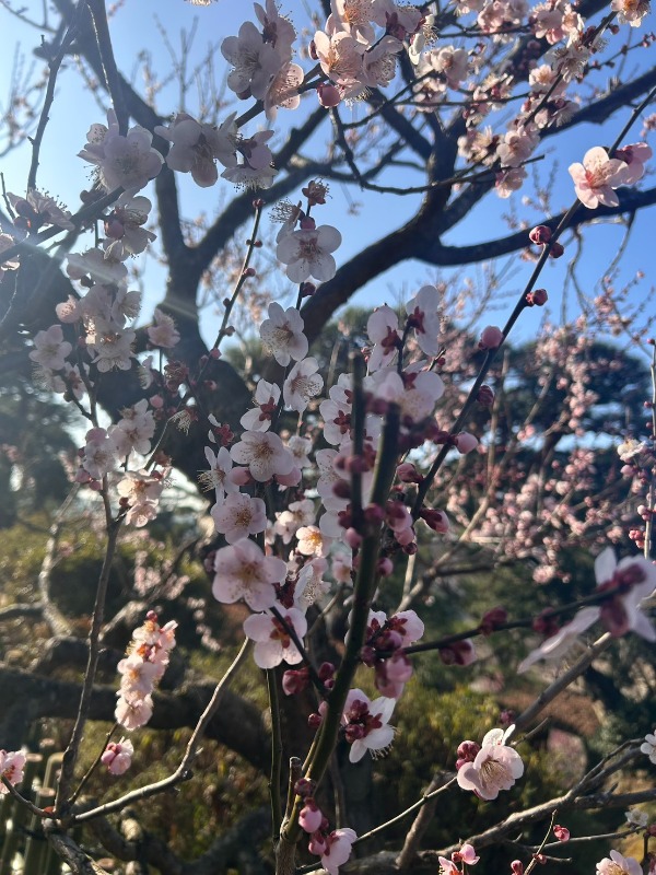 園内は青空と梅のコントラストがとても綺麗で、白梅や紅梅が咲き始め、これから満開を迎えるのが楽しみな様子でした。