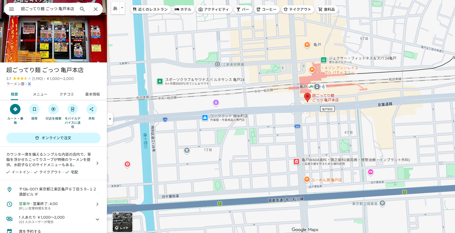 📍 店舗情報:超ごってり麺 ごっつ 亀戸本店