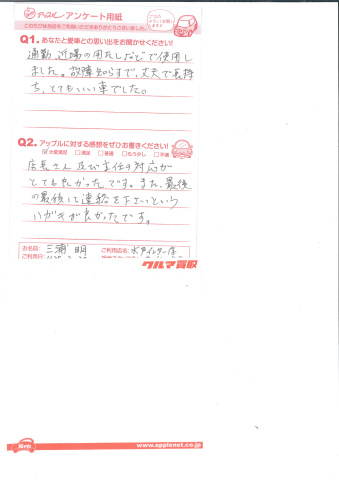 お車のご相談・ 査定だけでもOK! カンタン 入力 30秒 アップルがブランド買取始めました! お電話でも受付中! 受付時間10:00 ~ 18:30 0120-366-310 お車のご相談・ 査定だけでもOK! カンタン 入力 30秒 アップルがブランド買取始めました! お電話でも受付中! 受付時間10:00 ~ 18:30 0120-366-310 アップルがブランド買取始めました! お電話でも受付中! 受付時間10:00 ~ 18:30 0120-366-310 店舗情報 在庫車 スタッフ紹介 ブログ お客様の声 キャンペーン お得 無料査定 click お客様の声 ご記入日: 2013/10/10 A.M様 通勤、近場の用たしなどで使用しました。故障知らずで丈夫で長持ち、とてもいい車でした。店長さん及び主任の対応がとても良かったです。また、最後の最後に連絡を下さいという。ハガキがよかったです。 前へ 次へ お客様の声一覧を見る
