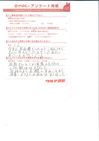 お車のご相談・ 査定だけでもOK! カンタン 入力 30秒 アップルがブランド買取始めました! お電話でも受付中! 受付時間10:00 ~ 18:30 0120-366-310 お車のご相談・ 査定だけでもOK! カンタン 入力 30秒 アップルがブランド買取始めました! お電話でも受付中! 受付時間10:00 ~ 18:30 0120-366-310 アップルがブランド買取始めました! お電話でも受付中! 受付時間10:00 ~ 18:30 0120-366-310 店舗情報 在庫車 スタッフ紹介 ブログ お客様の声 キャンペーン お得 無料査定 click お客様の声 ご記入日: 2014/10/07 H.U様 今まで普通車だったのでこまわりがきくし、年をとっているせいで自分にあっていると思っている。店長さんと従業員の方たちのとても親切な対応で気持ちよくお願いすることが出来、又なにかあれば利用したい。 前へ 次へ お客様の声一覧を見る