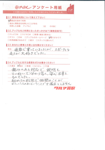 お車のご相談・ 査定だけでもOK! カンタン 入力 30秒 アップルがブランド買取始めました! お電話でも受付中! 受付時間10:00 ~ 18:30 0120-366-310 お車のご相談・ 査定だけでもOK! カンタン 入力 30秒 アップルがブランド買取始めました! お電話でも受付中! 受付時間10:00 ~ 18:30 0120-366-310 アップルがブランド買取始めました! お電話でも受付中! 受付時間10:00 ~ 18:30 0120-366-310 店舗情報 在庫車 スタッフ紹介 ブログ お客様の声 キャンペーン お得 無料査定 click お客様の声 ご記入日: 2015/01/17 M.S様 通勤で乗っていましたが、スポーティな走りが大好きでした。親しみのある対応で、説明もていねいで分かり易く安心出来るものでした。初めての利用で価格のことがそういうものかということで大満足としませんでした。 前へ 次へ お客様の声一覧を見る