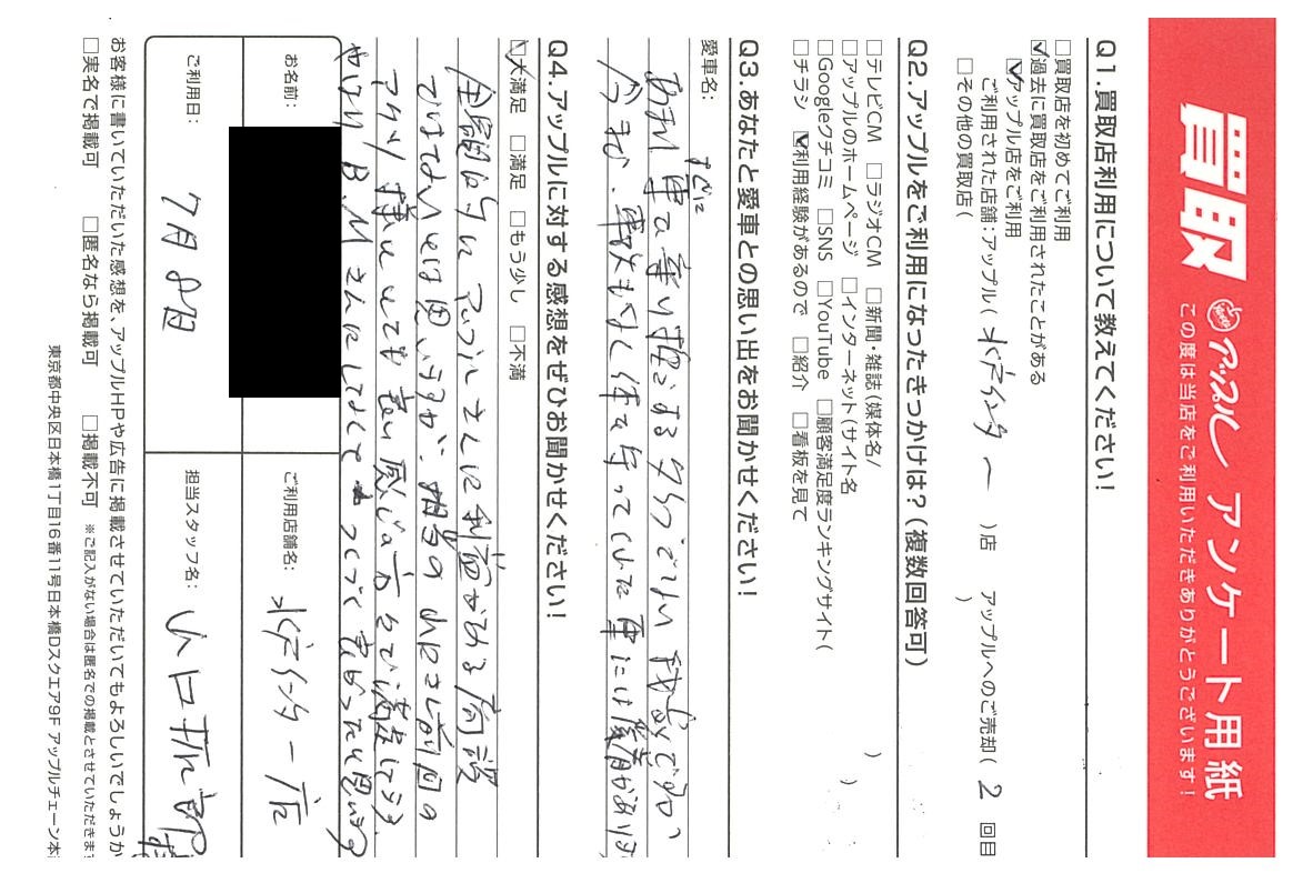 全額的にアップルさんに利益がある商談ではないとは思いますが担当の山口さん前回のアクツ様ととても良い感じの方で満足しています