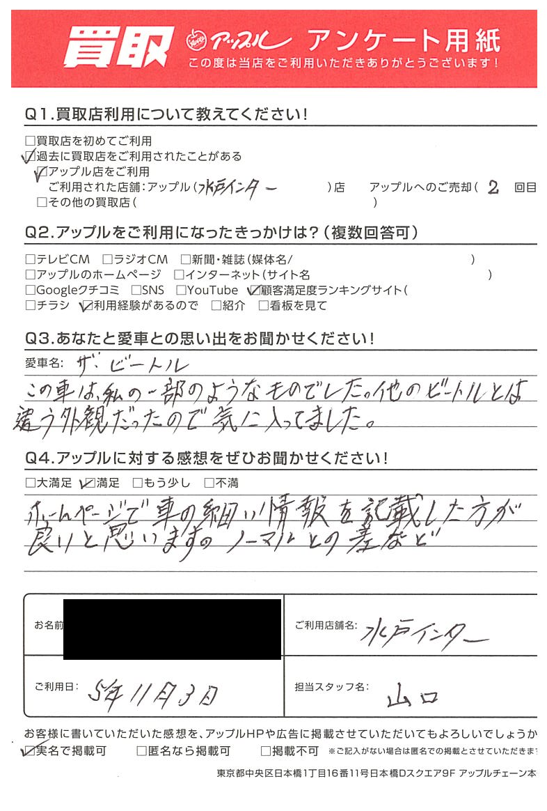 笠間市 K様 車名:フォルクスワーゲン ザ・ビートル