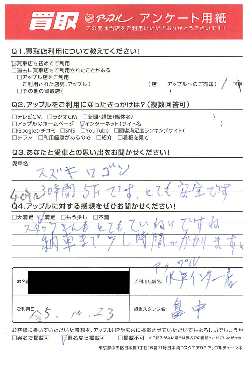 お車のご相談・ 査定だけでもOK! カンタン 入力 30秒 アップルがブランド買取始めました! お電話でも受付中! 受付時間10:00 ~ 18:30 0120-366-310 お車のご相談・ 査定だけでもOK! カンタン 入力 30秒 アップルがブランド買取始めました! お電話でも受付中! 受付時間10:00 ~ 18:30 0120-366-310 アップルがブランド買取始めました! お電話でも受付中! 受付時間10:00 ~ 18:30 0120-366-310 店舗情報 在庫車 スタッフ紹介 ブログ お客様の声 キャンペーン お得 無料査定 click お客様の声 ご記入日: 2023/10/23 鉾田市 I様 車名:スズキ ワゴンR 【貴方と愛車との思い出をお聞かせください。】スズキ ワゴンR30年間5Fですとても安全です【アップルに対する感想をぜひお聞かせください。】スタッフさんもとてもていねですね納車まで少し時間かかりますね 前へ 次へ お客様の声一覧を見る
