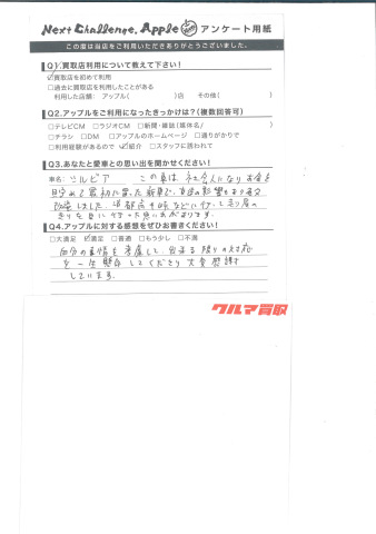 お車のご相談・ 査定だけでもOK! カンタン 入力 30秒 アップルがブランド買取始めました! お電話でも受付中! 受付時間10:00 ~ 18:30 0120-366-310 お車のご相談・ 査定だけでもOK! カンタン 入力 30秒 アップルがブランド買取始めました! お電話でも受付中! 受付時間10:00 ~ 18:30 0120-366-310 アップルがブランド買取始めました! お電話でも受付中! 受付時間10:00 ~ 18:30 0120-366-310 店舗情報 在庫車 スタッフ紹介 ブログ お客様の声 キャンペーン お得 無料査定 click お客様の声 ご記入日: 2015/06/15 A.T様 この車は、社会人になりお金を貯めて最初に買った新車で、友達の影響もあり色々改造しました。首都高や峠なども行って走り屋の走りを見に行った思い出があります。自分の事情を考慮して、出来る限りの対応を一生懸命してくださり大変感謝しています。 前へ 次へ お客様の声一覧を見る
