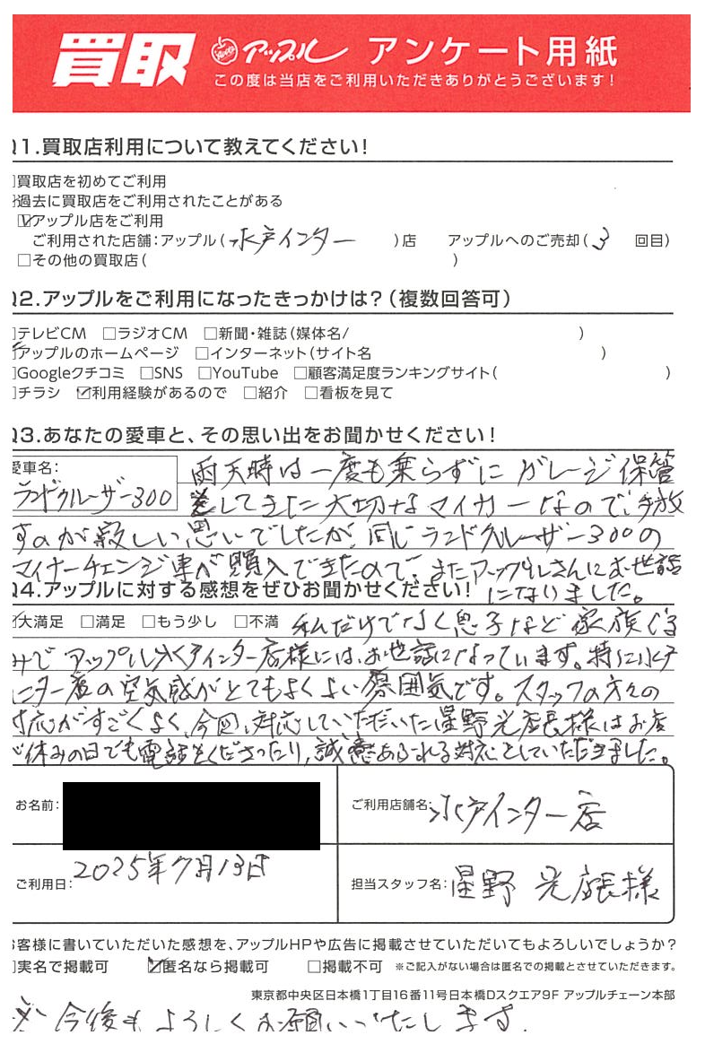 ひたちなか市 I様 車名:トヨタ ランドクルーザー300