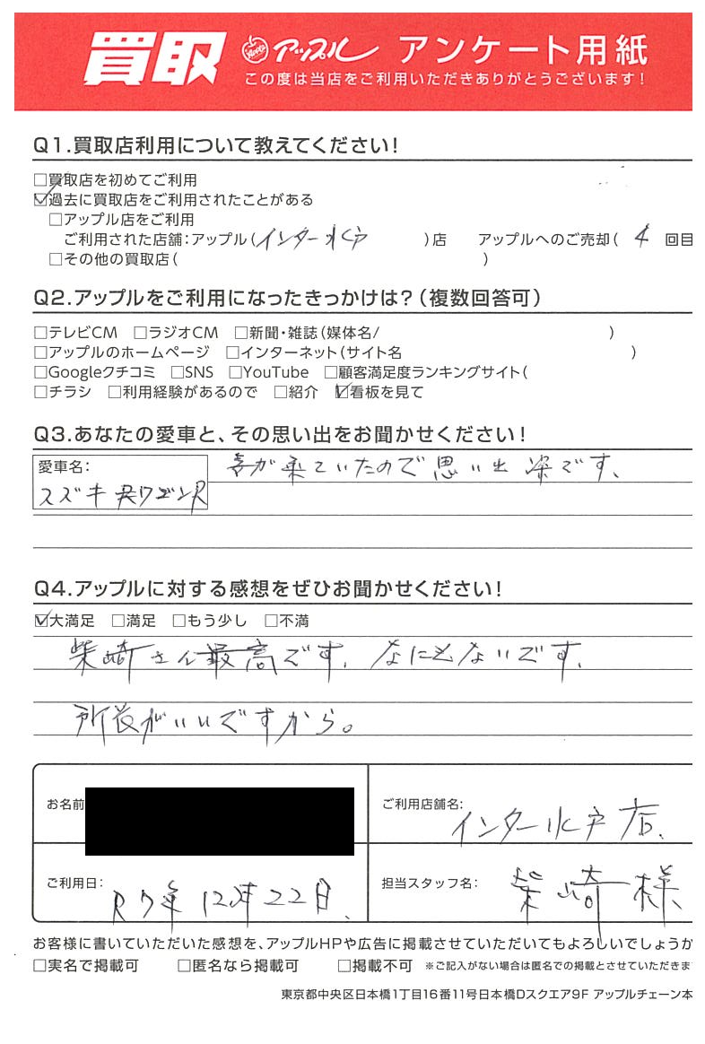 お車のご相談・ 査定だけでもOK! カンタン 入力 30秒 アップルがブランド買取始めました! お電話でも受付中! 受付時間10:00 ~ 18:30 0120-366-310 お車のご相談・ 査定だけでもOK! カンタン 入力 30秒 アップルがブランド買取始めました! お電話でも受付中! 受付時間10:00 ~ 18:30 0120-366-310 アップルがブランド買取始めました! お電話でも受付中! 受付時間10:00 ~ 18:30 0120-366-310 店舗情報 在庫車 スタッフ紹介 ブログ お客様の声 キャンペーン お得 無料査定 click お客様の声 ご記入日: 2025/12/22 那珂市 G様 車名:スズキ ワゴンR 【貴方と愛車との思い出をお聞かせください。】妻が乗っていたので思い出です。【アップルに対する感想をぜひお聞かせください。】柴崎さん最高です。なにもないです所長がいいですから 前へ 次へ お客様の声一覧を見る