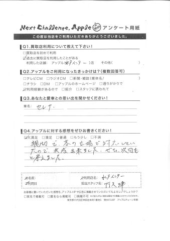 お車のご相談・ 査定だけでもOK! カンタン 入力 30秒 アップルがブランド買取始めました! お電話でも受付中! 受付時間10:00 ~ 18:30 0120-366-310 お車のご相談・ 査定だけでもOK! カンタン 入力 30秒 アップルがブランド買取始めました! お電話でも受付中! 受付時間10:00 ~ 18:30 0120-366-310 アップルがブランド買取始めました! お電話でも受付中! 受付時間10:00 ~ 18:30 0120-366-310 店舗情報 在庫車 スタッフ紹介 ブログ お客様の声 キャンペーン お得 無料査定 click お客様の声 ご記入日: 2015/11/13 K様 親切で客の立場で対応していただいたので共感出来ました。ぜひ、次回もと考えました。 前へ 次へ お客様の声一覧を見る