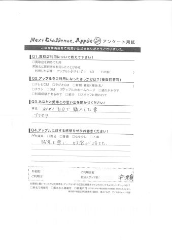 お車のご相談・ 査定だけでもOK! カンタン 入力 30秒 アップルがブランド買取始めました! お電話でも受付中! 受付時間10:00 ~ 18:30 0120-366-310 お車のご相談・ 査定だけでもOK! カンタン 入力 30秒 アップルがブランド買取始めました! お電話でも受付中! 受付時間10:00 ~ 18:30 0120-366-310 アップルがブランド買取始めました! お電話でも受付中! 受付時間10:00 ~ 18:30 0120-366-310 店舗情報 在庫車 スタッフ紹介 ブログ お客様の声 キャンペーン お得 無料査定 click お客様の声 ご記入日: 2016/01/02 N様 初めて自分で購入した車。誠意を感じ、好感が持てた。 前へ 次へ お客様の声一覧を見る