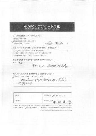 お車のご相談・ 査定だけでもOK! カンタン 入力 30秒 アップルがブランド買取始めました! お電話でも受付中! 受付時間10:00 ~ 18:30 0120-366-310 お車のご相談・ 査定だけでもOK! カンタン 入力 30秒 アップルがブランド買取始めました! お電話でも受付中! 受付時間10:00 ~ 18:30 0120-366-310 アップルがブランド買取始めました! お電話でも受付中! 受付時間10:00 ~ 18:30 0120-366-310 店舗情報 在庫車 スタッフ紹介 ブログ お客様の声 キャンペーン お得 無料査定 click お客様の声 ご記入日: 2016/06/10 N.K様 Q.あなたと愛車との思い出をお聞かせください!車名:コルト特になし。通勤用だった為・・・。Q.アップルに対する感想をぜひお書きください!担当の方が丁寧で気持ちの良い対応をして頂きました。担当スタッフ:小林 前へ 次へ お客様の声一覧を見る