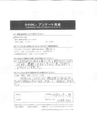 人生初めての自分の車でした。軽なので小回りがきき、運転しやすかったので、色んな所へドライブいきました。