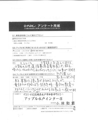車を買取って頂く事が初めてでしたが、電話での待応ぶり、訪問時、貴社の教育に力を入れていらっしゃるのがよくわかる社員の方に感心しました。