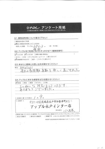 お車のご相談・ 査定だけでもOK! カンタン 入力 30秒 アップルがブランド買取始めました! お電話でも受付中! 受付時間10:00 ~ 18:30 0120-366-310 お車のご相談・ 査定だけでもOK! カンタン 入力 30秒 アップルがブランド買取始めました! お電話でも受付中! 受付時間10:00 ~ 18:30 0120-366-310 アップルがブランド買取始めました! お電話でも受付中! 受付時間10:00 ~ 18:30 0120-366-310 店舗情報 在庫車 スタッフ紹介 ブログ お客様の声 キャンペーン お得 無料査定 click お客様の声 ご記入日: 2016/12/01 M.K様 Q.あなたと愛車との思い出をお聞かせください!BMW120i毎日の長距離通勤を楽しく過ごせました。Q.アップルに対する感想をぜひお書きください!ていねいな対応をしていただき、ありがとうございました。担当スタッフ:小林 前へ 次へ お客様の声一覧を見る