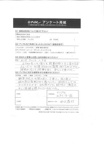価格もムダなかけ引きをせず、納得の行く説明で満足のゆく価格を提示していただいた。