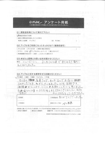女性の店員さんで、私が1人でお店にうかがったことを、ねぎらってくれました。とても信頼でき、価格どうこうより、ここにお願いしたいと思いました。私自身が自分の仕事に対する考え方を改めさせられるくらい、あたたかい対応をしていただきました。