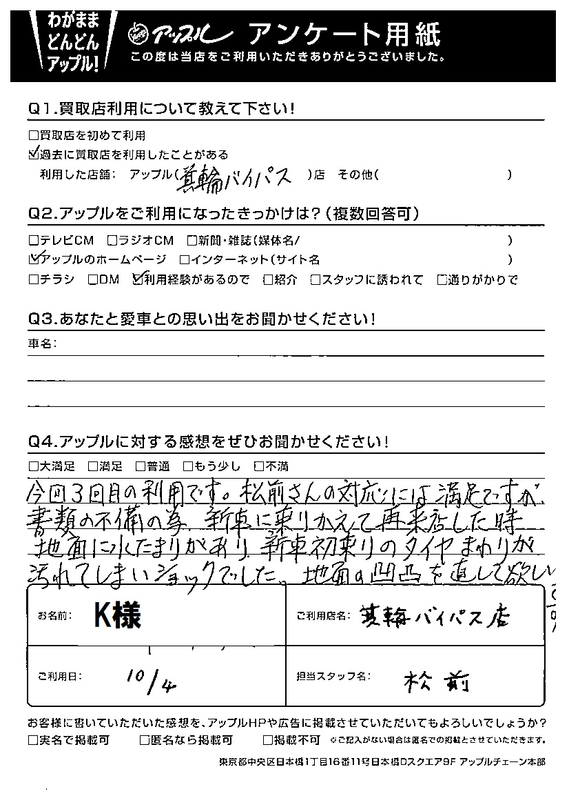 汚れてしまいショックでした。地面の凹凸を直して欲しいです。