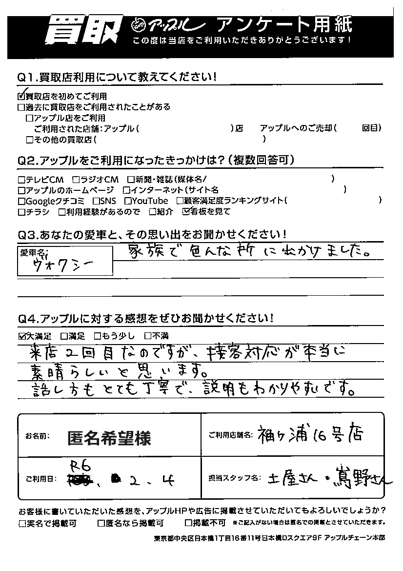 匿名希望様 車名:トヨタ ヴォクシー