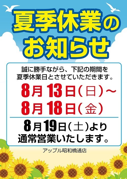 お車のご相談・ 査定だけでもOK! カンタン 入力 30秒 アップルがブランド買取始めました! お電話でも受付中! 受付時間10:00 ~ 19:00 052-363-7811 お車のご相談・ 査定だけでもOK! カンタン 入力 30秒 アップルがブランド買取始めました! お電話でも受付中! 受付時間10:00 ~ 19:00 052-363-7811 アップルがブランド買取始めました! お電話でも受付中! 受付時間10:00 ~ 19:00 052-363-7811 店舗情報 在庫車 スタッフ紹介 ブログ お客様の声 キャンペーン 無料査定 click 最新記事一覧 月別アーカイブ 2026年04月(4)2026年03月(7)2026年02月(6)2026年01月(8)2025年12月(5)2025年11月(2)2025年10月(6)2025年09月(8)2025年08月(6)2025年07月(14)2025年06月(9)2025年05月(8)2025年04月(9)2025年03月(1)2025年02月(2)2025年01月(2)2024年12月(5)2024年11月(11)2024年10月(14)2024年09月(16)2024年08月(14)2024年07月(11)2024年06月(14)2024年05月(13)2024年04月(15)2024年03月(10)2024年02月(17)2024年01月(16)2023年12月(16)2023年11月(23)2023年10月(23)2023年09月(26)2023年08月(20)2023年07月(26)2023年06月(25)2023年05月(21)2023年04月(19)2023年03月(12)2023年02月(14)2023年01月(17)2022年12月(16)2022年11月(18)2022年10月(16)2022年09月(17)2022年08月(17)2022年07月(21)2022年06月(20)2022年05月(15)2022年04月(22)2022年03月(22)2022年02月(19)2022年01月(20)2021年12月(19)2021年11月(20)2021年10月(15)2021年09月(15)2021年08月(16)2021年07月(13)2021年06月(11)2021年05月(8)2021年04月(7)2021年03月(6)2021年02月(5)2021年01月(5)2020年12月(2)2020年11月(4)2020年10月(8)2020年09月(5)2020年08月(7)2020年07月(9)2020年06月(11)2020年05月(1)2020年04月(4)2020年03月(17)2020年02月(24)2020年01月(22)2019年12月(12)2019年11月(8)2019年10月(2)2019年09月(5)2019年08月(7)2019年07月(1)2019年06月(4)2019年05月(3)2019年04月(5)2019年03月(4)2019年02月(6)2019年01月(3)2018年12月(9)2018年10月(15)2018年09月(24)2018年08月(22)2018年07月(27)2018年06月(24)2018年05月(23)2018年04月(25)2018年03月(27)2018年02月(24)2018年01月(24)2017年12月(16)2017年11月(5)2017年10月(4)2017年09月(8)2017年08月(6)2017年07月(8)2017年06月(4)2017年05月(6)2017年04月(6)2017年03月(6)2017年02月(5)2017年01月(7)2016年12月(5)2016年11月(5)2016年10月(8)2016年09月(9)2016年08月(10)2016年07月(7)2016年06月(6)2016年05月(4)2016年04月(6)2016年03月(3)2016年02月(4)2016年01月(5)2015年12月(5)2015年11月(4)2015年10月(5)2015年09月(8)2015年08月(10)2015年07月(9)2015年06月(10)2015年05月(8)2015年04月(10)2015年03月(7)2015年02月(6)2015年01月(7)2014年12月(9)2014年11月(10)2014年10月(5)2014年09月(11)2014年08月(13)2014年07月(10)2014年06月(10)2014年05月(7)2014年04月(4)2014年03月(1)2014年02月(2)2014年01月(2)2013年12月(2)2013年11月(1)2013年10月(1)2013年09月(2) 351-360/1608件中 [ 未分類 ] 2023/08/19(土) 10:56 ○○本日から営業再開しております○○ いつもブログをご覧の皆様こんにちはタイトル通り本日より営業再開でございます!!昨日まで夏季休業を頂き誠にありがとうございました。冷たいお飲み物を準備してスタッフ一同皆様のご来店を心よりお待ちしております!★以上亀井でした★愛知県名古屋市中川区の車買取・新車・新古車・中古車販売アップル昭和橋通… [ 未分類 ] 2023/08/12(土) 13:51 明日から夏季休業致します。 いつもブログをご覧の皆様こんにちは本日は亀井です('ω')ノ事前にお知らせをしておりましたが、夏季休暇のお知らせです!明日8月13日(日)~8月18日(金)迄誠に勝手ながら夏季休業とさせて頂きますまた8月19日(土)は通常通り朝10時より営業再開いたします!皆様には大変ご… [ 未分類 ] 2023/08/11(金) 14:51 待ちに待った! 皆様、こんにちわ!店長のなかざきです。本日も快晴!良いお天気ですね~まずは、お知らせです。8月13日(日)から8月18日(金)まで夏季休業となります。ご来店をお考えのお客様、お気を付け下さい。先日、注文していた物がようやく届きました!はい、またしてもスラムダンクグッズです。フィギュアだけは、… [ 未分類 ] 2023/08/10(木) 10:18 新しい家族 ~part2~(後編) アップル🍎昭和橋通店のブログをご覧の皆様ごきげんよ~ぅヾ(≧▽≦)ノ暑さ厳しい今日この頃(※写真はネットより引用)志事終わりの3㊙歳の顔なんて油田ぐらいテカテカもぉ、色んな意味で茹で卵みたいに°˖✧とぅるんとぅるん✧˖°(※写真はネットより引用)はい!!今日のブログは💛我が家の可愛らしい家族… [ 未分類 ] 2023/08/08(火) 11:28 衝動買い!! ブログをご覧の皆様ありがとうございます!!副店長の鷲見です(^O^)/まずは皆様に夏季休業についてのご案内をさせて頂きます!上記記載の通り8/13㈰〜8/18㈮までをお休みとさせて頂き、8/19㈯から通常営業になりますのでご来店を検討中の方はご迷惑おかけしますが宜しくお願い致します。さて今回… [ つぶやき ] 2023/08/07(月) 09:19 ★ 釣り ☆ アップル昭和橋通店のブログをご覧の親愛なる皆様ご機嫌いかがでしょうか★(千葉県で産まれて、保護犬として子犬からうちに来てくれた、次女のスミレ♀涼しいお部屋でくつろいでます☆)はい、今日のブログはワタクシ、愛犬大好き犬馬鹿のウメハラがお送りいたします!お付き合い下さいませ☆さてさて、先日ワタク… [ 未分類 ] 2023/08/06(日) 12:34 ドライブスポット#11 こんにちは!日曜日のブログ担当永野です。今回もドライブスポ
