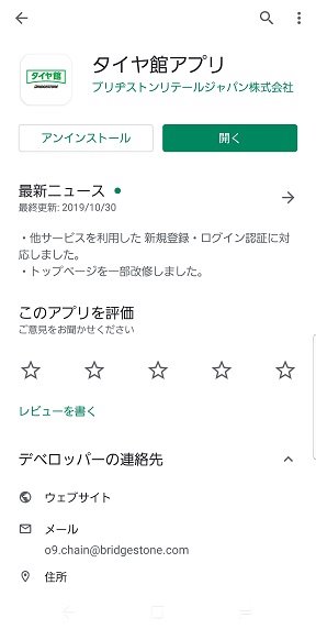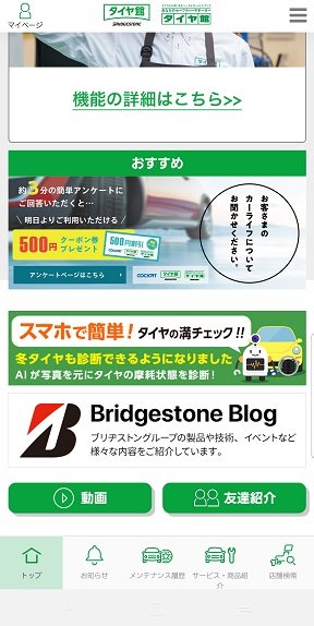 ブリヂストンさんのタイヤ館アプリ