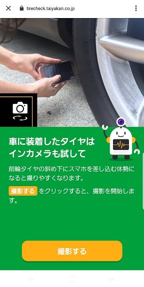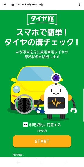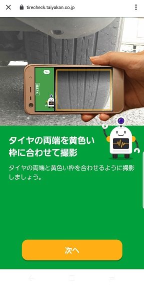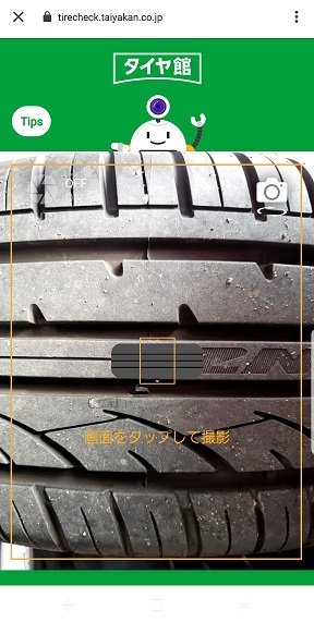 アプリ内の「スマホで簡単!タイヤの溝チェック!!」