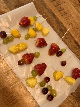 子供達は楽しそうに果物を串や爪楊枝に刺していきます。