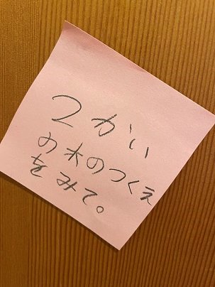 先日、帰宅し夕食を済ませお風呂から上がると風呂場の扉にこんな付箋が!