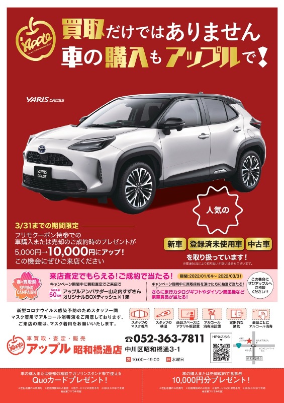 豪華景品が当たる&来店査定でプレゼントのキャンペーンが3/31まで開催しております!!